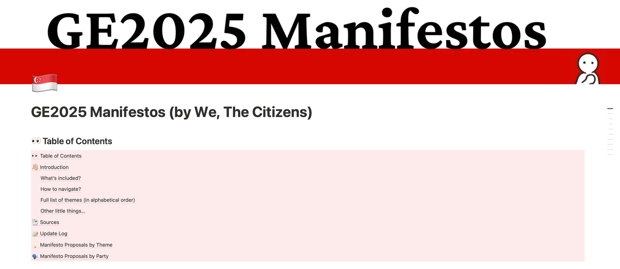 I’ve spent most of today on a deep dive into party manifestos. I’ve already mentioned a few times in this newsletter that I maintain a spreadsheet for party manifestos as a one-stop shop for everyone’s convenience… Well, I was trying on Thursday to update that Google Sheet with PAP and Workers' Party's manifestos when it hit me that this could be so much better, so I ditched the sheet and started building something new. About 6–8 hours of eye-watering work later, I present to you the zhng-ed GE2025 Manifesto Database 🥳 🥳 🥳