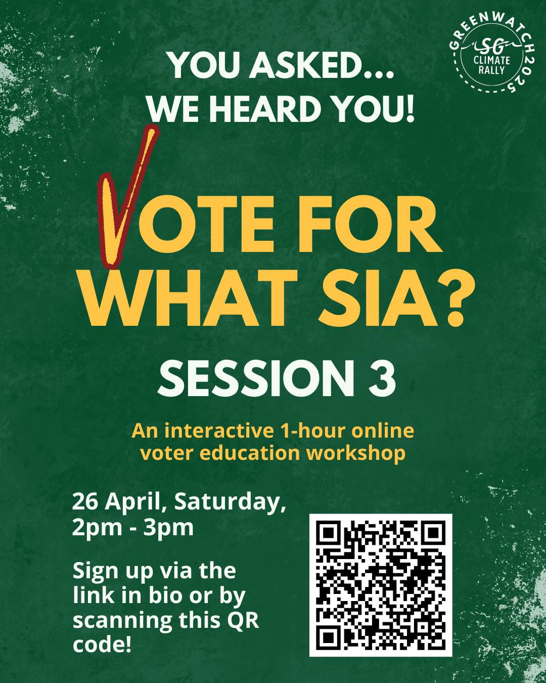 Do you feel like you might need some help to get to grips with the election? SG Climate Rally will be holding their third voter education workshop on 26 April: