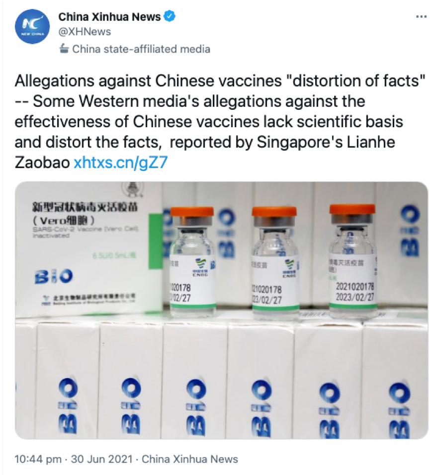 Sometimes Xinhua does this in misleading ways, such as a claim that a ‘Singaporean newspaper’ reported that ‘Western’ allegations of genocide in Xinjiang were unconvincing. The piece referenced wasn’t actually a news report, but an opinion piece for Zaobao by Goh, who had previously also been given space in the paper (and later, also in The Straits Times) to spread the conspiracy theory that the protests in Hong Kong were the work of Western-supported colour revolution. In another instance, Xinhua used a Zaobao write-up of remarks by a Chinese foreign affairs spokesperson to make it appear as if the newspaper had itself reported that allegations against Chinese vaccines were lies. At other times, Zaobao’s approach makes it easier to be used, such as when it echoes Chinese language that call for ‘science-based study’ of Covid-19’s origins. Xinhua was also enthused about an uncritical Zaobao report on why young people join the Chinese Communist Party.