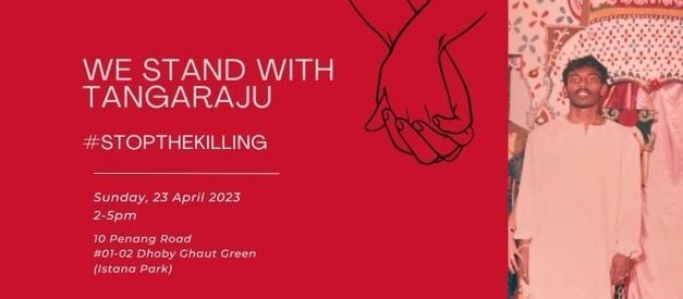 There will be a public event on Sunday at 2pm in the Visual Arts Centre on Dhoby Ghaut Green where Tangaraju's loved ones will speak and appeal for his execution to be halted and his case reviewed. We'll also be writing clemency appeal letters together. Please join us if you can.