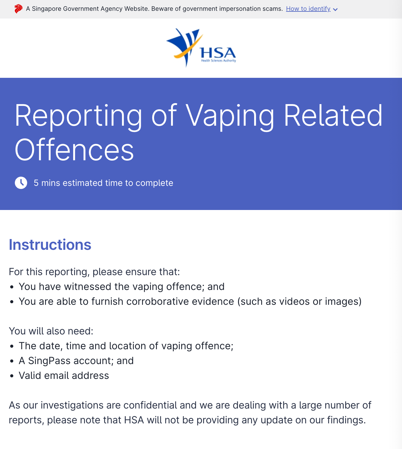 As part of this new war against vaping, Singaporeans are encouraged to snitch (what’s new?) and report people using vapes to the authorities—they’ve even set up an official form for you to do this reporting. Please keep in mind that you’re going to need a SingPass account and also videos or photos of the scandalous vapour-sucking.