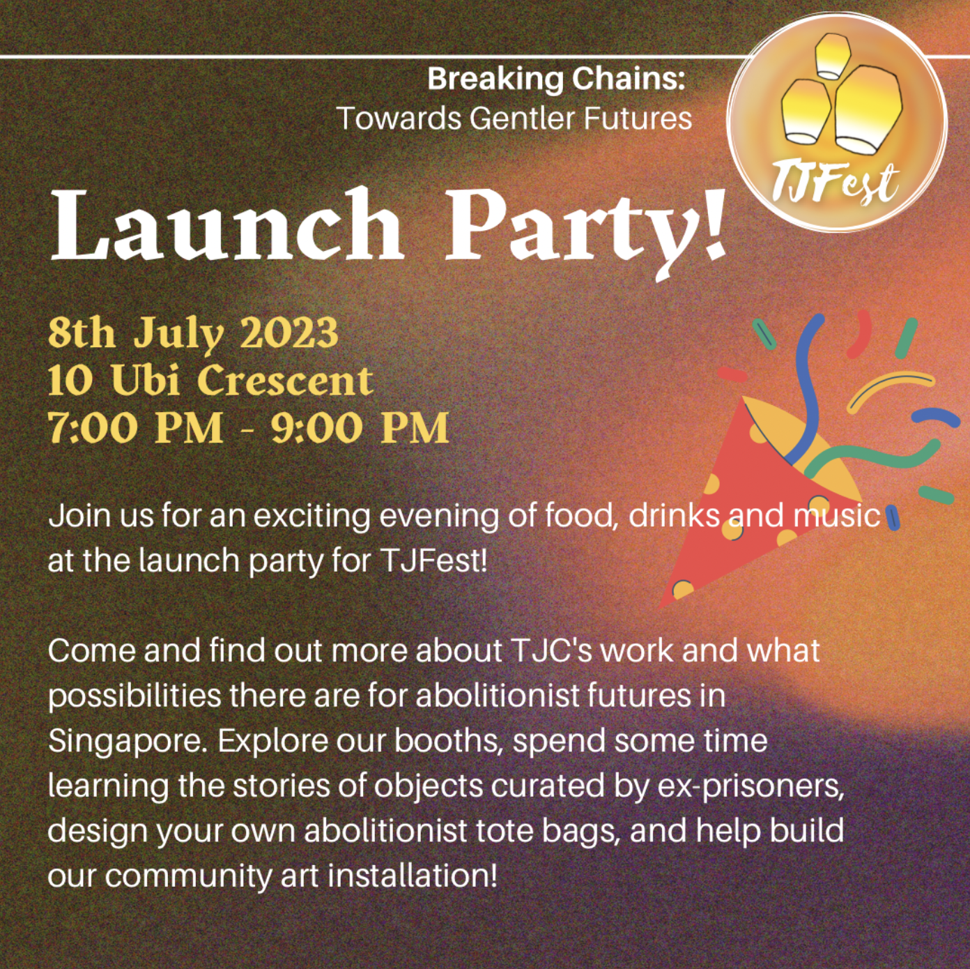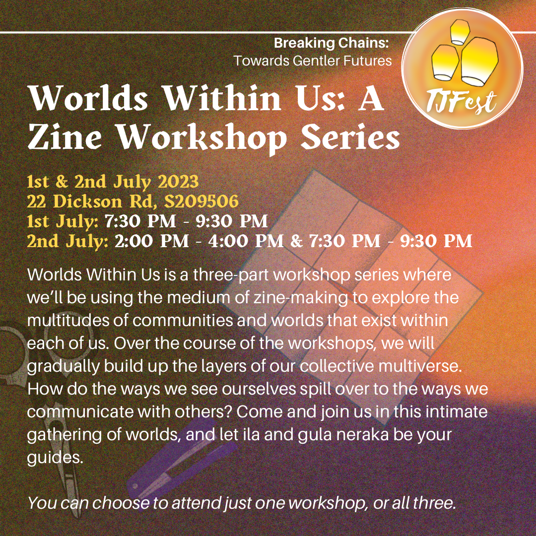 We'll have all this (and more!) at the inaugural TJFest by the Transformative Justice Collective, titled 'Breaking Chains: Towards Gentler Futures'.