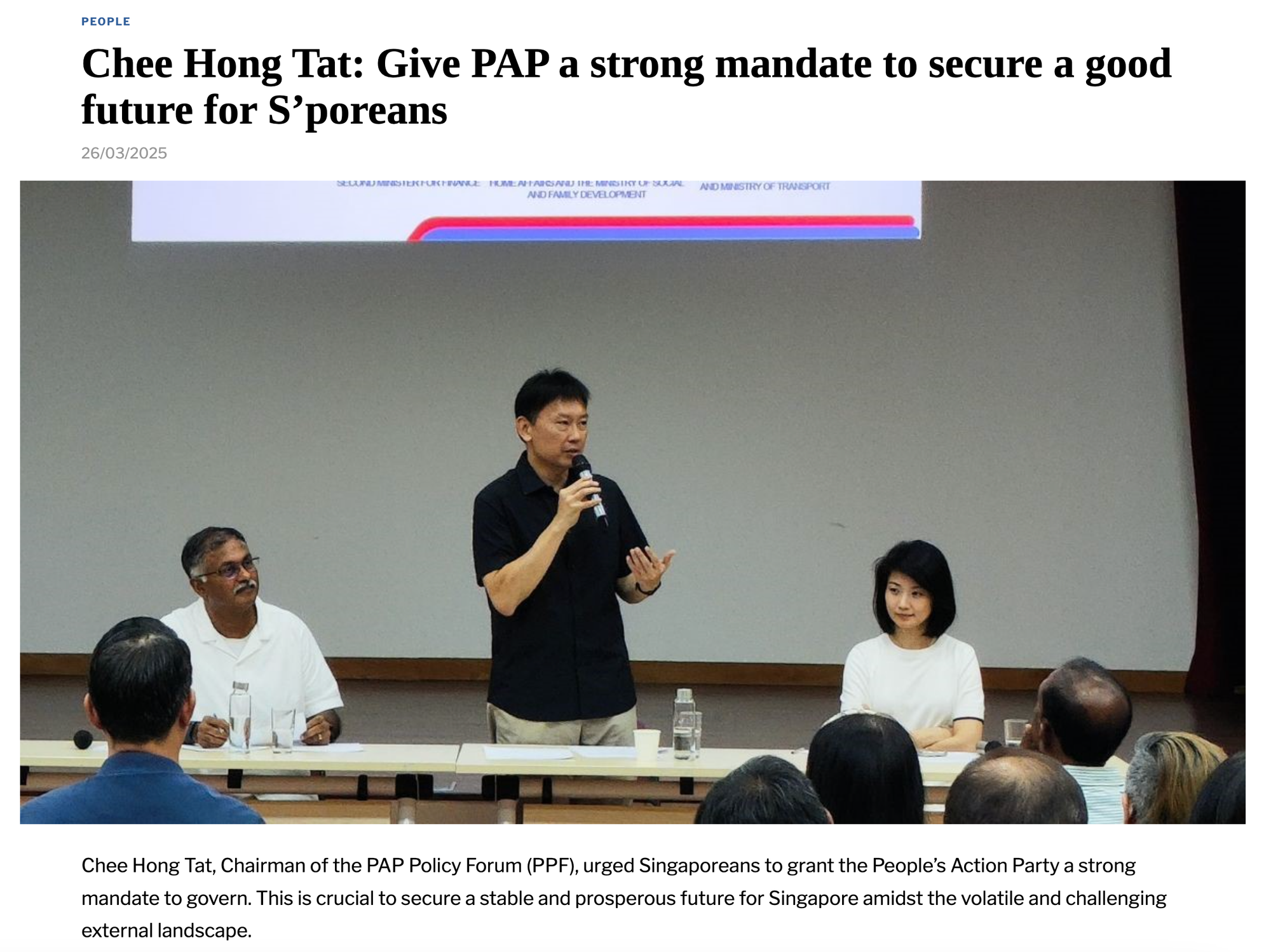 “I would say, it's not about the PAP needing a strong mandate, but Singaporeans recognising that much is at stake for Singapore in this new environment. Because in order to survive, in order to thrive, in order for us to navigate a very challenging global environment, we will need a strong and united Singapore.”