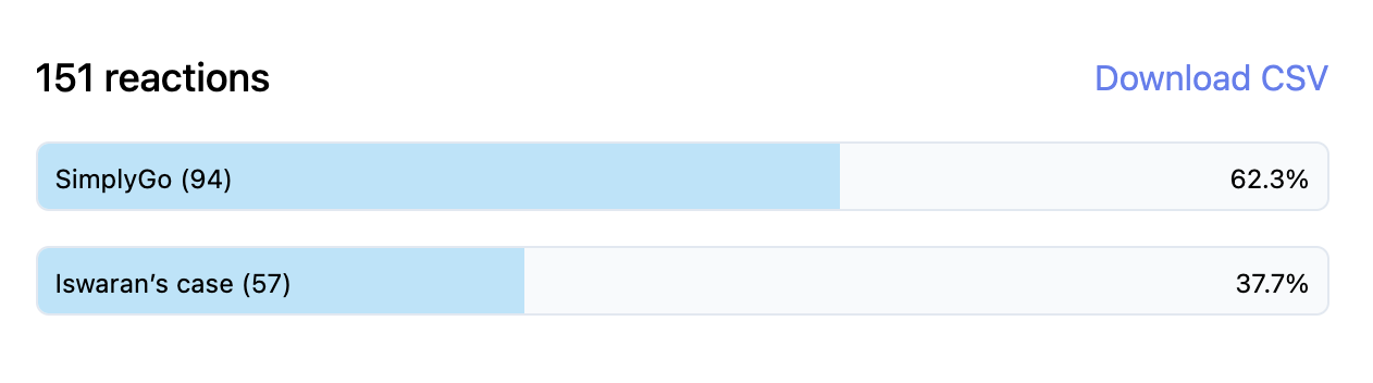 In last week’s newsletter, I asked you to choose which annoyed you more: S Iswaran’s corruption charges, or the SimplyGo fiasco. 151 of you responded. Here are the results: