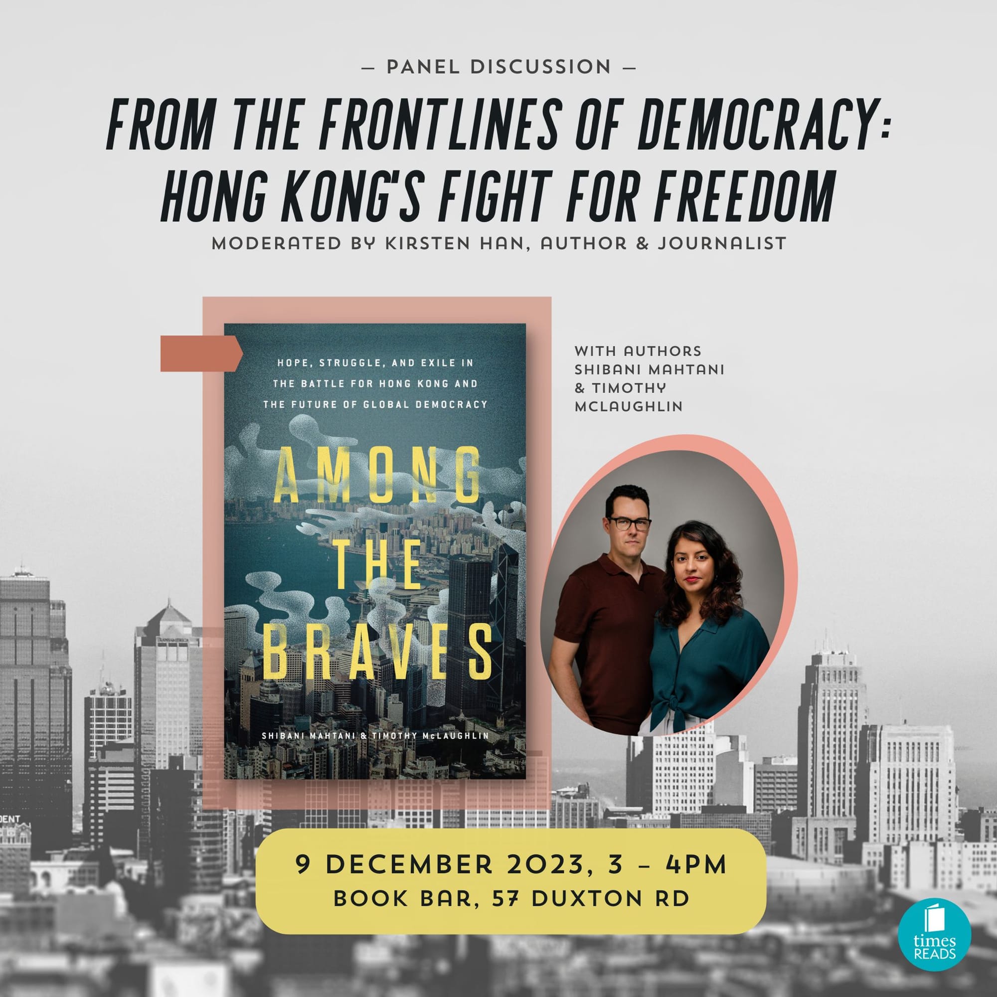 I'll be moderating a discussion with them at Book Bar on 9 December from 3–4pm, so see you there.