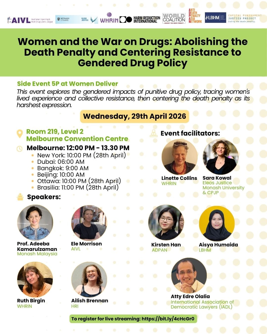 This event explores the gendered impacts of punitive drug policy, tracing women and gender diverse peoples' lived experience and collective resistance. Centring the death penalty as its harshest expression, the event will also focus on women on death row across Asia, calling for abolition and justice.